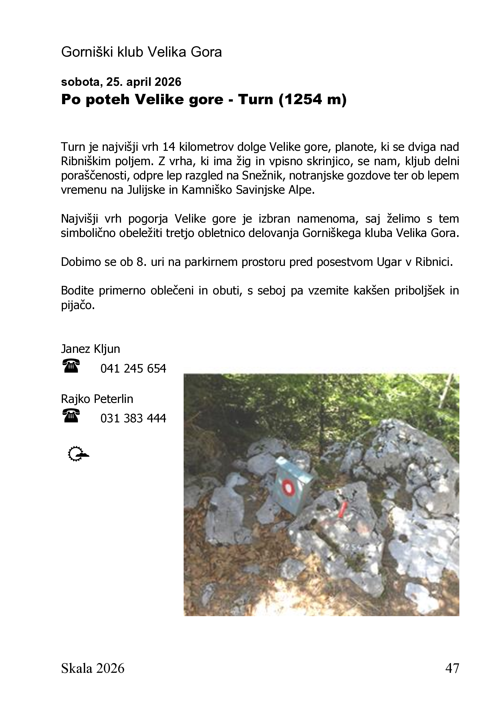 sobota 25.04.2026 Po poteh Velike gore - Turn (1254 m)
